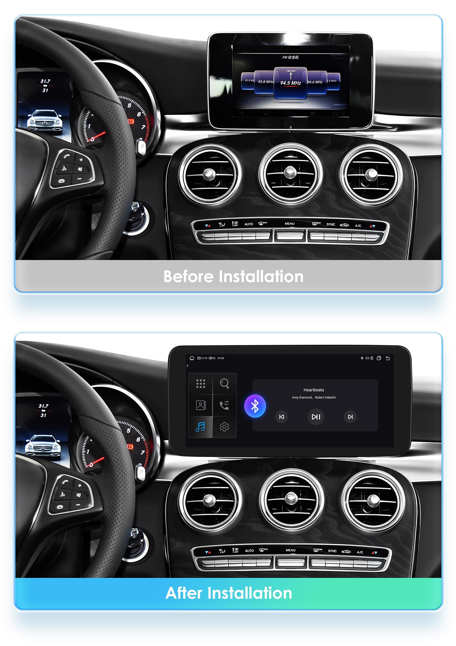 Мултимедия с операционна система Android за Mercedes C Class W205 съвместима с моделите от 2015 до 2018 година.